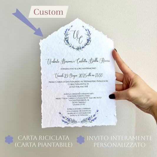 Invito Matrimonio in Carta Piantabile – Stile Rustico Elegante – Personalizzato con Nomi, Testo e Grafica – Carta Riciclata Artigianale