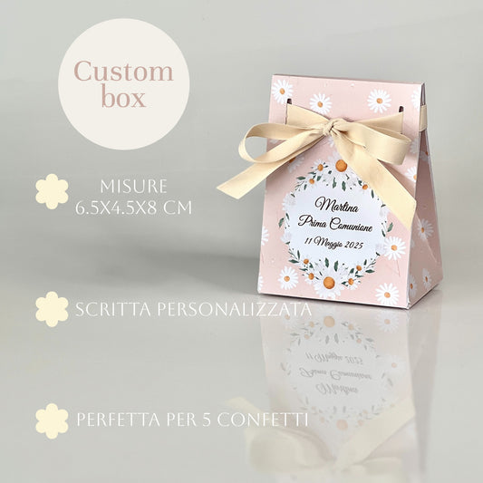 Scatolina a Borsetta Rosa con Margherite – Personalizzata – Prima Comunione / Eventi – Perfetta per 5 Confetti - Bomboniera Comunione