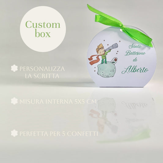 Scatolina Battesimo Personalizzata Tonda – 5x5 cm – Grafica Piccolo Principe