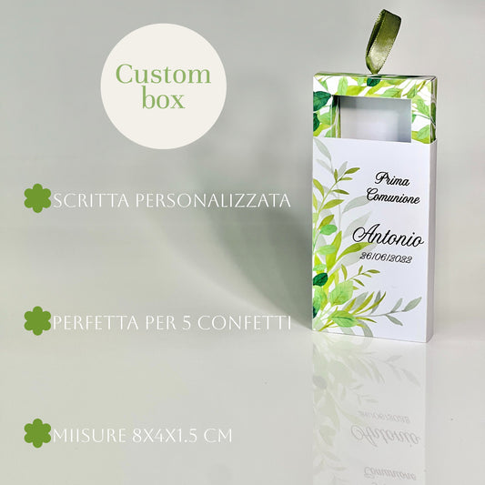 Scatolina Prima Comunione Verde – Portaconfetti Personalizzato Elegante per 5 Confetti - Bomboniera Comunione o Battesimo