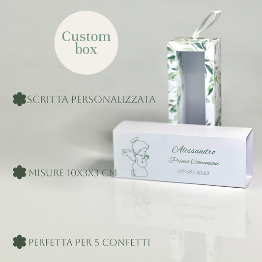 Scatolina Porta Confetti Comunione Personalizzata – Box con Angioletto – Grafica Verde – Bomboniera Bambino