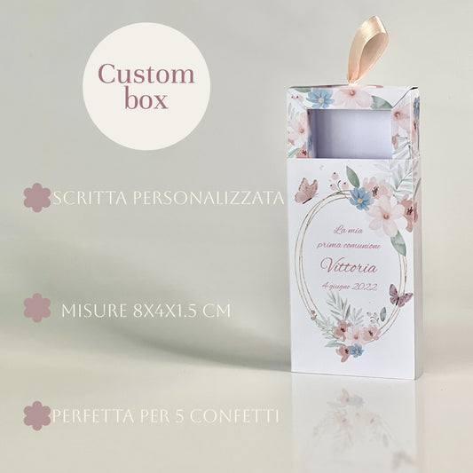 Scatolina Prima Comunione personalizzata – Box con cassetto – 3 grafiche disponibili – Porta confetti elegante - Bomboniera Personalizzata