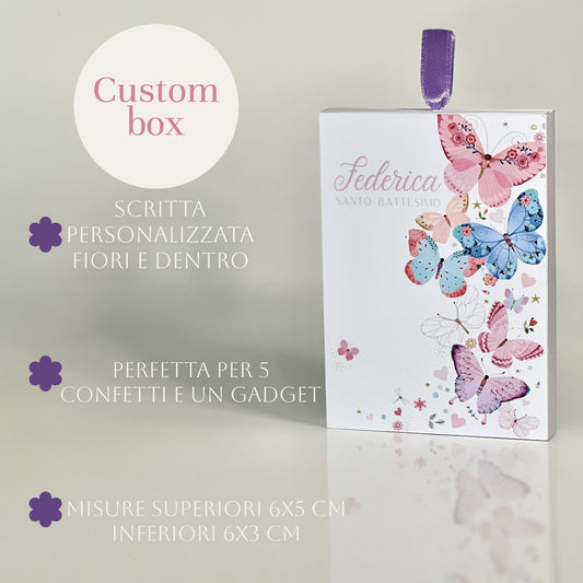 Scatolina Farfalle e Fiori Personalizzata – Bomboniera Battesimo Elegante | Due Grafiche Rosa Delicate