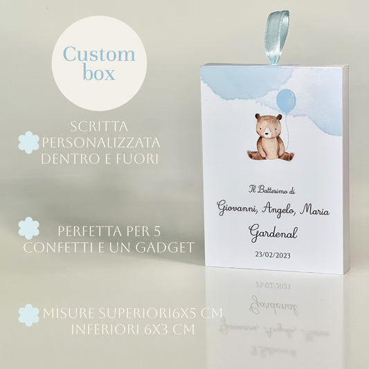 Scatolina Battesimo con Orsetto – Personalizzata Dentro e Fuori – Perfetta per Confetti e Gadget - Bomboniera Battesimo