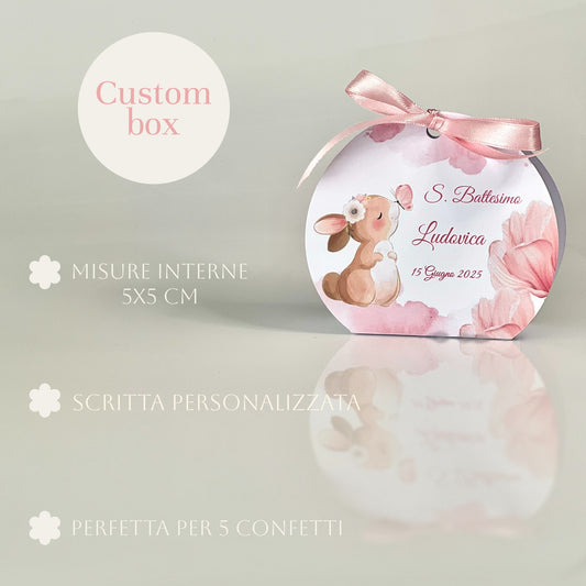 Scatolina Battesimo Rosa – Bomboniera Personalizzata con Coniglietta o Orsetto Perfetta per 5 Confetti - Porta confetti Rotonda rosa