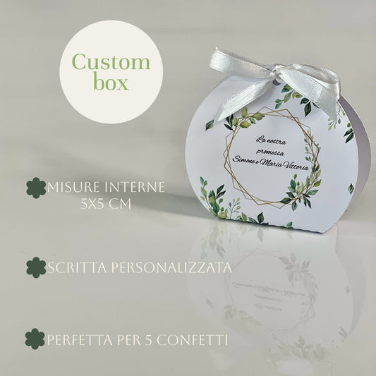 Scatolina Portaconfetti a Cassetto – Grafica Green (Verde Salvia o Verde Bosco) – Personalizzata con Nomi & Data - Bomboniera Promessa