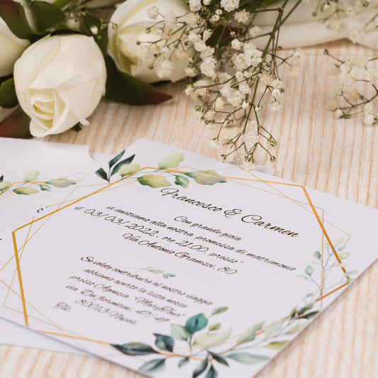 Invito per matrimonio o promessa personalizzato semplice Ed elegante, dettagli in verde, per maggiori info in descrizione