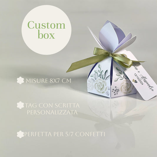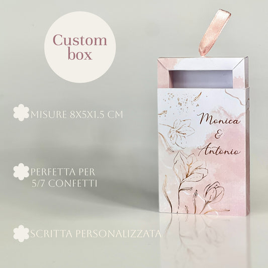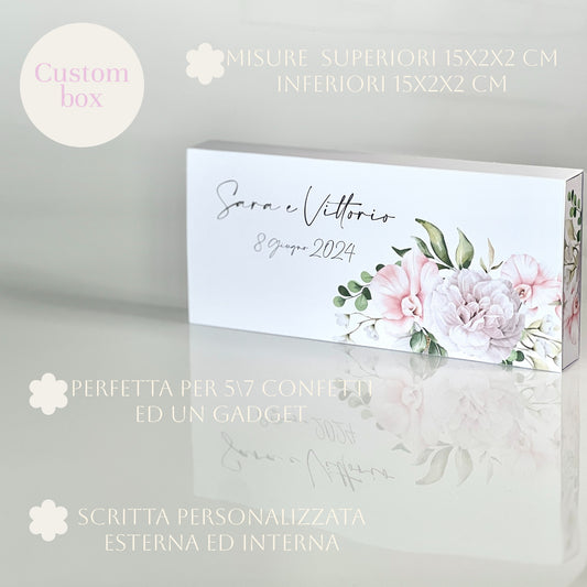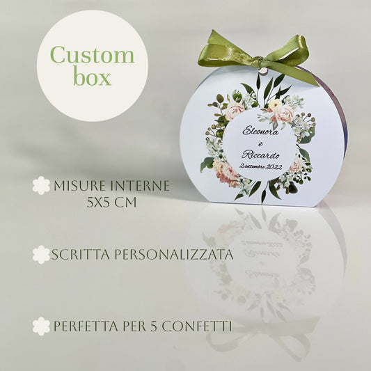 Scatolina Portaconfetti con Finestra – Grafica Floreale Elegante – Personalizzata con Nomi & Data