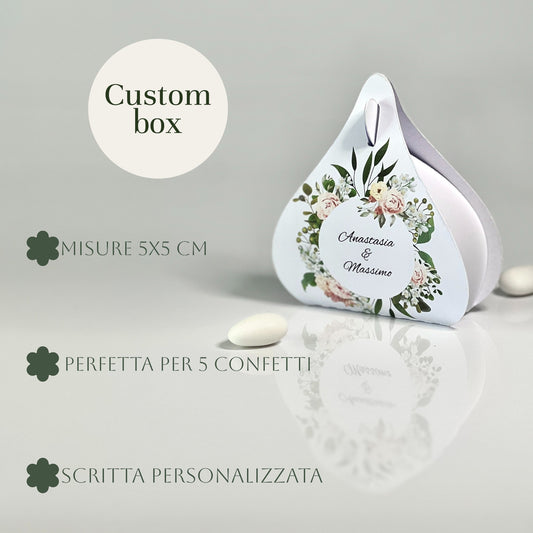 Scatolina Portaconfetti a Goccia – Grafica Floreale Elegante – Personalizzata con Nomi & Data - Bomboniera Matrimonio