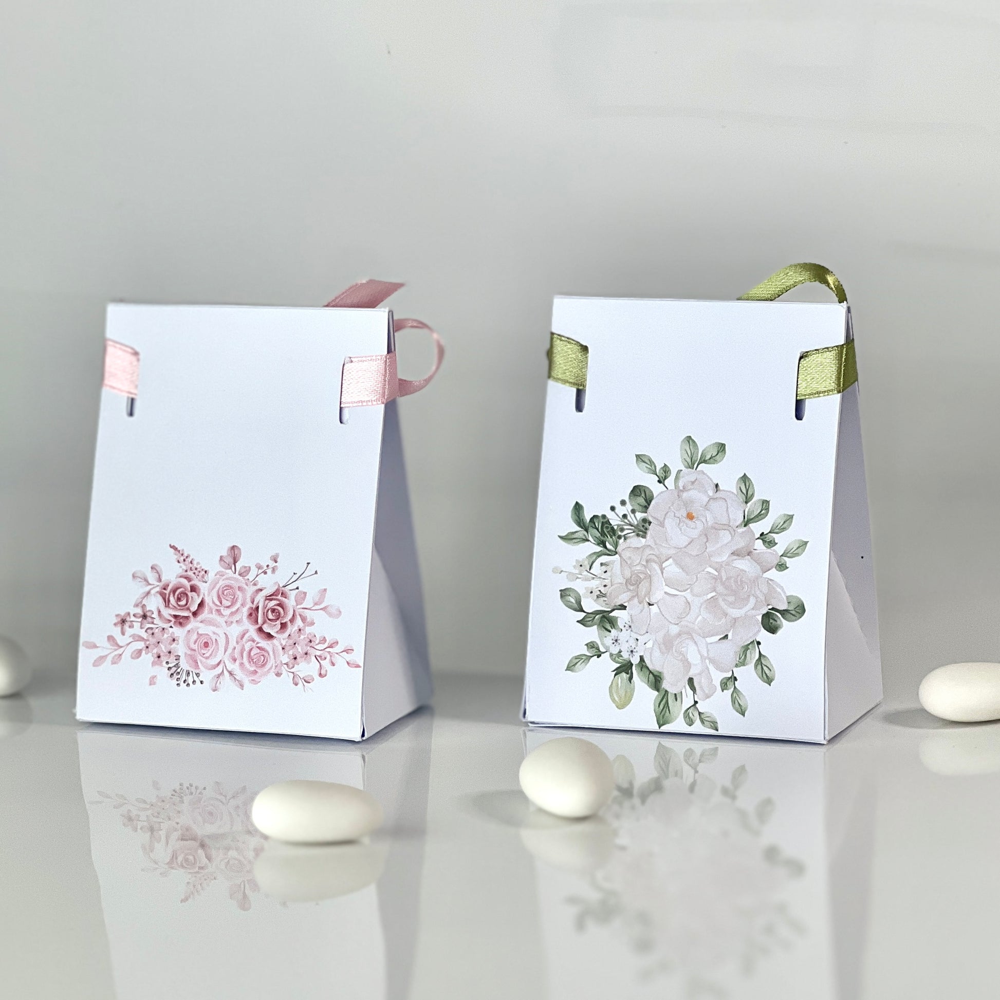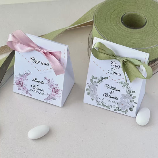 Scatolina Bag Matrimonio – Con Fiocco | 2 Grafiche Disponibili (Rosa & Salvia) | Perfetta per 5/7 Confetti - Bomboniera Matrimonio