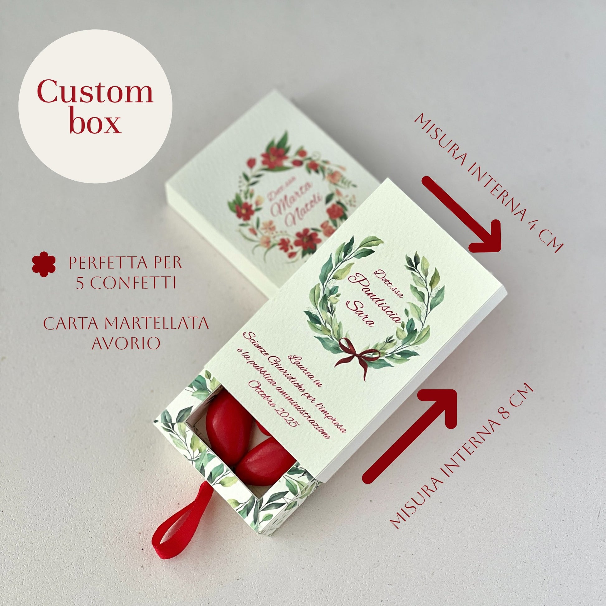 Scatolina porta confetti Laurea personalizzata | Corona d’Alloro verde o rossa | Bomboniera elegante per Dottorato e Laurea Triennale