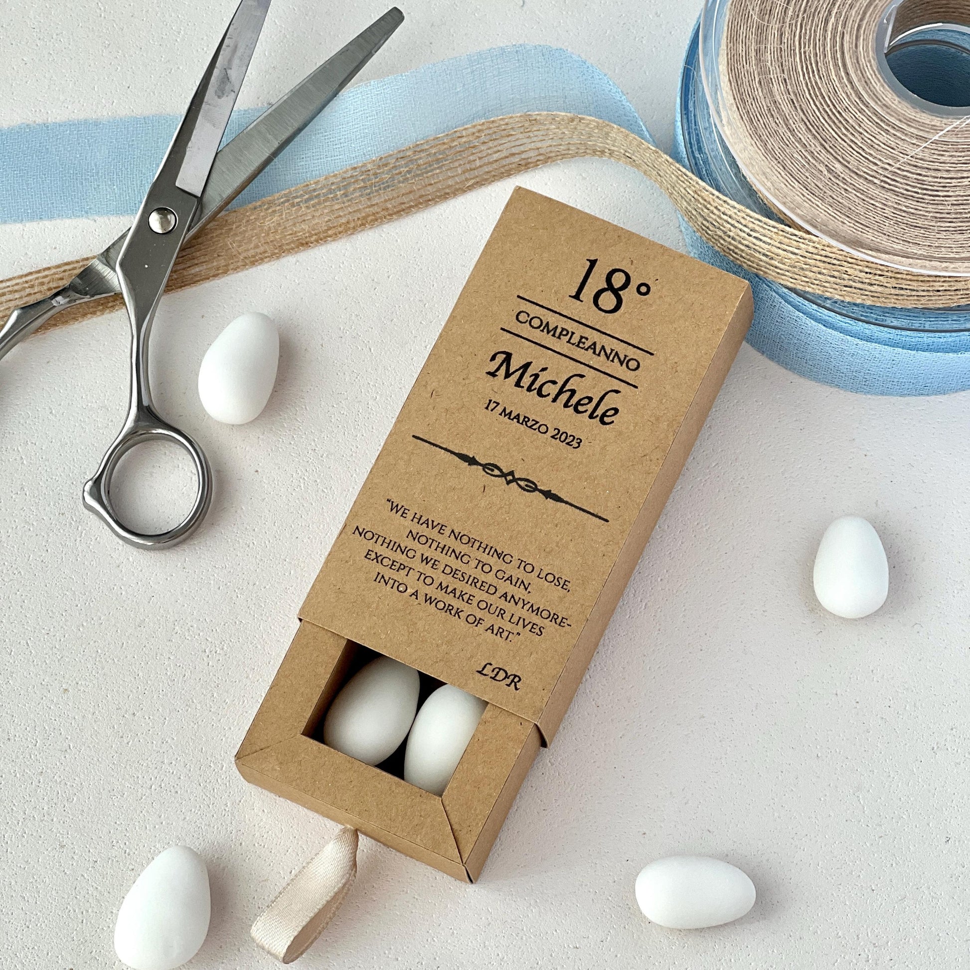 Scatolina a Cassetto Kraft – Personalizzata per Compleanni, 18esimi, Anniversari ed Eventi – Bomboniera Compreanno