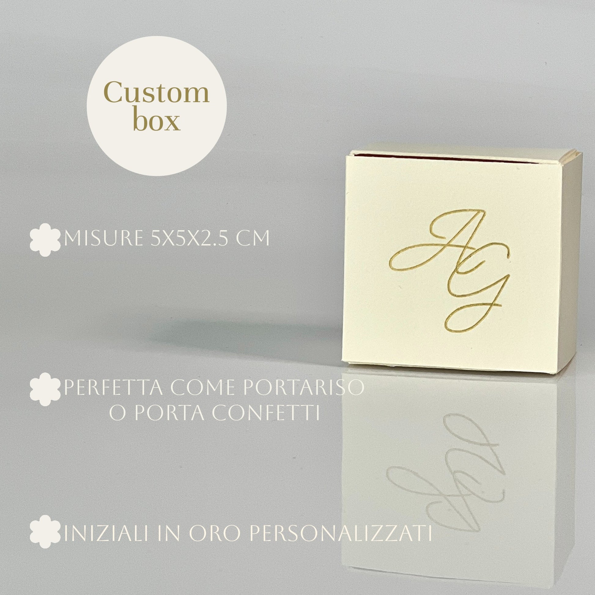 Scatolina Porta Riso/Confetti – 5×5×2.5 cm - Iniziali Oro Personalizzate | Minimal Chic Matrimonio