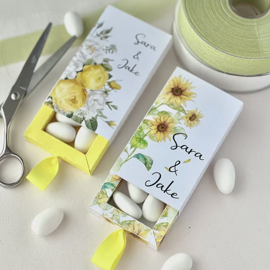 Scatolina Portaconfetti – Grafica Girasoli o Rose Gialle – Personalizzata con Nomi & Data - Bomboniera Matrimonio
